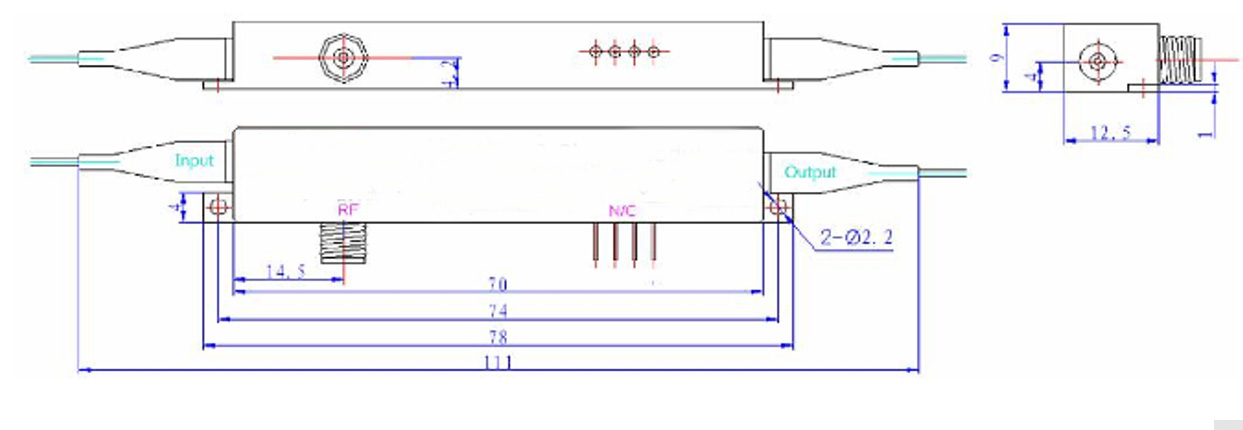 Product features:X-cut and Y-propagating Lithium Niobate、 Titanium diffusion or proton exchange waveguide、 Low drive voltage、 Independent bias electrodes、 Zero chirp、 Precise diagonal coupling of the fiber to the chip、 Greatly reducing back-reflection、 Excellent long-term stability