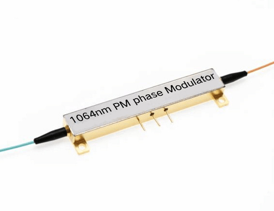 1064nm 300MHz lithium niobate electro-optic phase modulator is used to prepare optical waveguides using proton exchange technology. The modulator electrodes are designed in the form of lumped electrodes, and the input/output fibers are precisely diagonally coupled with the waveguides. The electro-optic effect of lithium niobate material is utilized to achieve phase modulation of optical signals passing through the optical waveguides.
