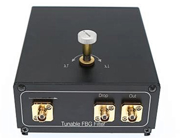 The core component of a filter is a fiber Bragg grating with a periodic change in refractive index. When a broad-spectrum beam of light is propagated to a fiber Bragg grating, each small section of the fiber after the refractive index is changed will only reflect a specific wavelength of light, which is called the Bragg wavelength, while other wavelengths of light will be propagated. The change in strain will simultaneously affect the effective refractive index and grating period of the fiber Bragg grating, thus changing the wavelength of the reflected light wave from the grating. In this device, the Bragg wavelength can be tuned by simply stretching the grating with a fine threaded screw to achieve wavelength tuning.